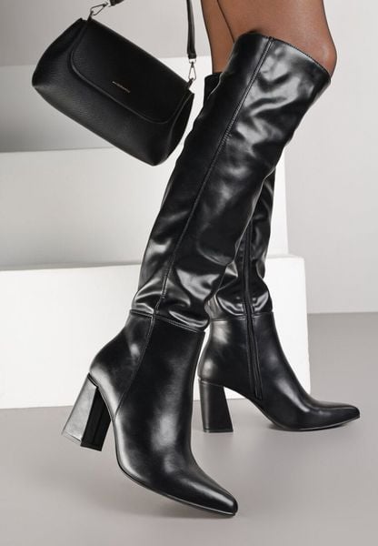 Czarne Kozaki Vices na Stożku ze Szpiczastym Noskiem Asarrise