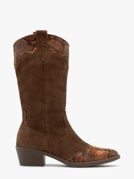 Brązowe kozaki kowbojki ze zwierzęcym printem
