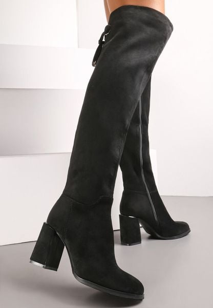 Czarne Kozaki za Kolano na Słupku z Imitacji Zamszu Lachare
