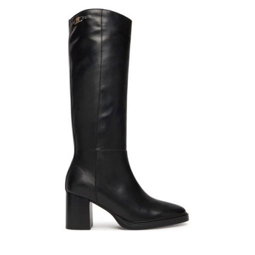 Kozaki Tommy Hilfiger Stacked Heel Leather Long Boot FW0FW08865 Czarny