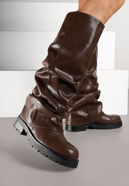 Brązowe Marszczone Kozaki z Cholewką Imitującą Nogawkę Nalomassa