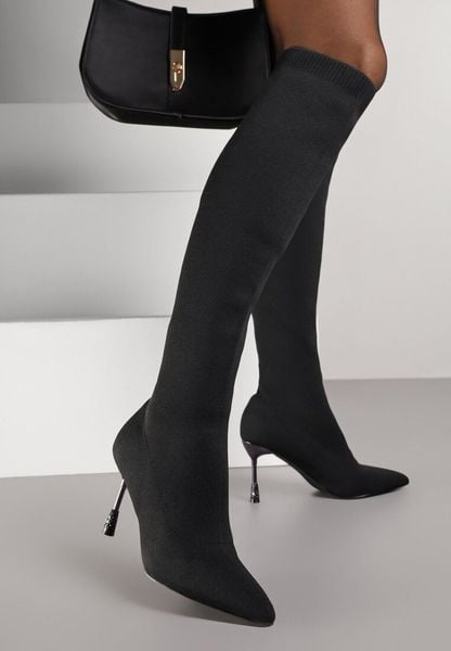 Czarne Skarpetkowe Kozaki Vices na Ozdobnym Obcasie z Cyrkoniami Nilritisa