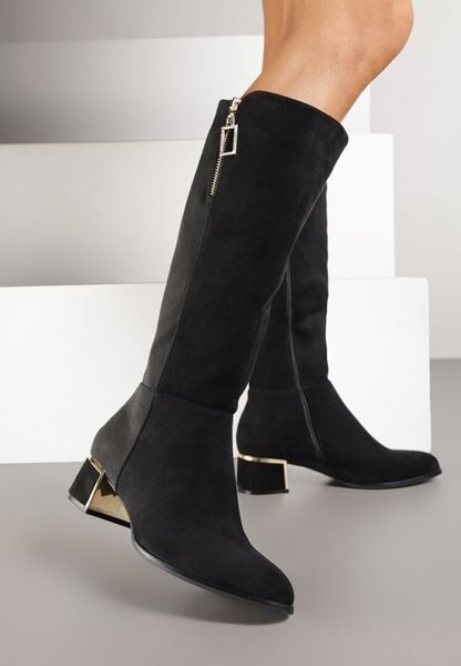 Czarne Kozaki na Obcasie Ozdobione Suwakiem Filore
