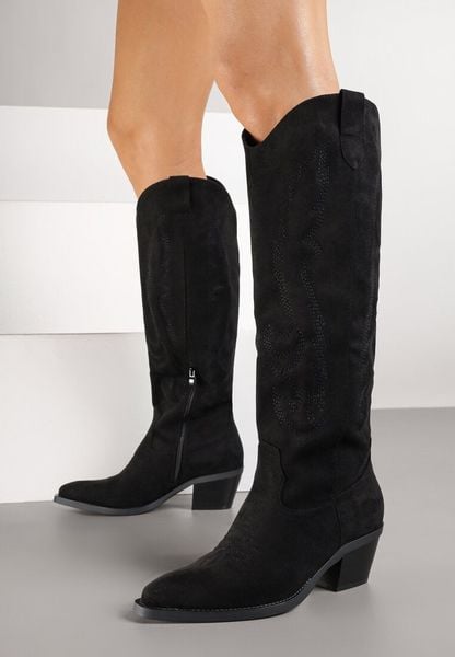 Czarne Kozaki Kowbojki w Klasycznym Stylu z Imitacji Zamszu Lataselia