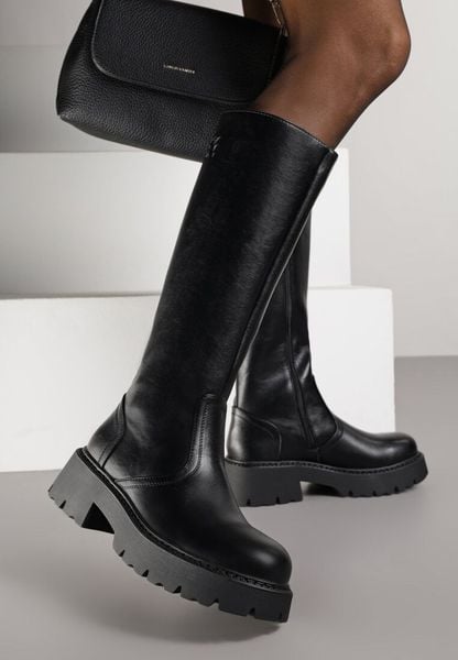 Czarne Kozaki na Grubej Podeszwie z Elastyczną Cholewką i Cyrkoniami Lerivelle