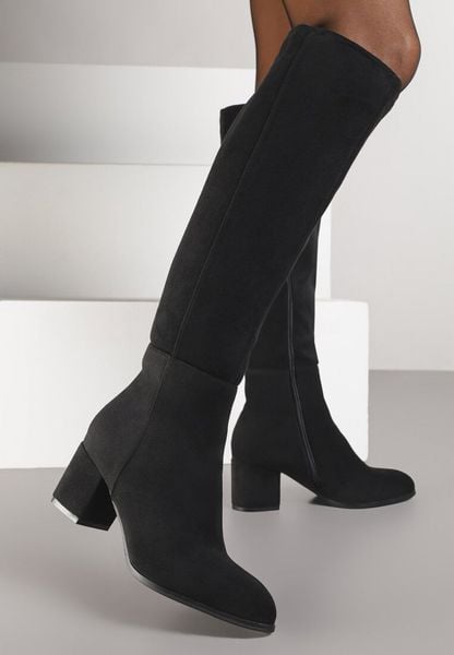 Czarne Kozaki z Imitacji Zamszu do Kolana Vices na Niskim Słupku Ilodia