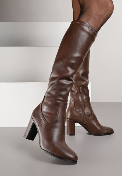 Brązowe Kozaki na Słupku z Przylegającą Cholewką Alovire