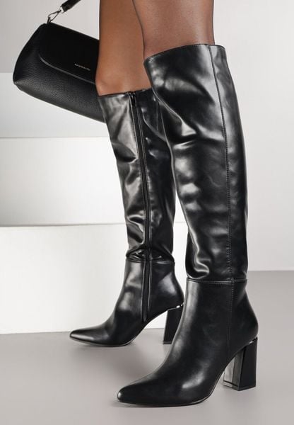Czarne Kozaki Vices na Stożkowym Obcasie Aserrise
