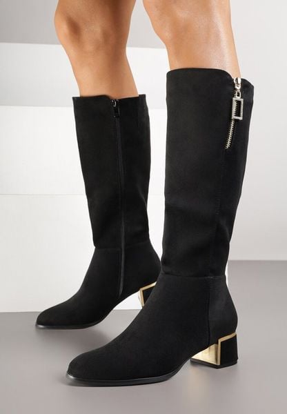 Czarne Kozaki na Słupku z Metaliczną Wstawką Miselle