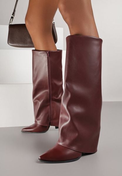 Bordowe Kozaki Typu Kowbojki na Stożku z Wywiniętą Cholewką Nalloria