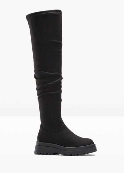 Modne kozaki za kolano na ozdobnej podeszwie.