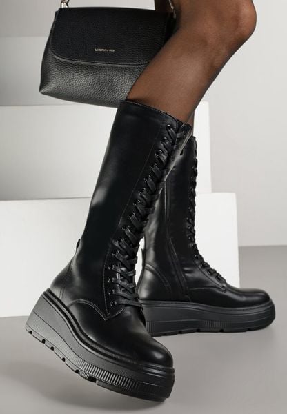Czarne Sznurowane Kozaki na Platformie w Stylu Grunge Ilovire