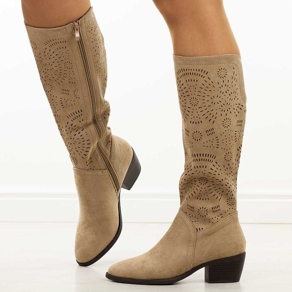 Beżowe zamszowe kozaki damskie Jezzi 1921-41
