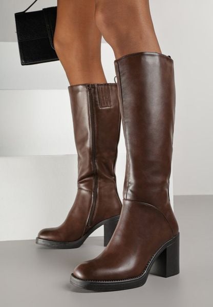 Brązowe Kozaki na Obcasie pod Kolano Candrie