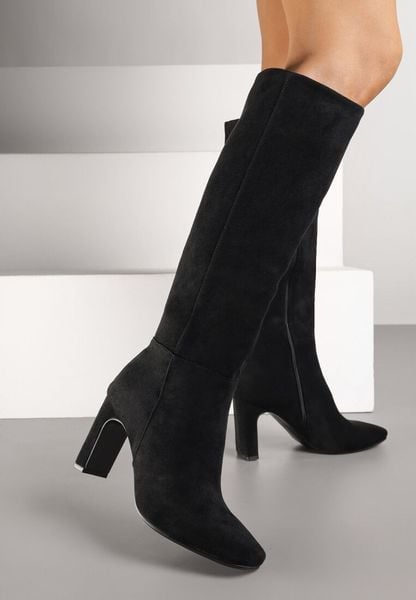 Czarne Casualowe Kozaki z Imitacji Zamszu na Słupku Delawe