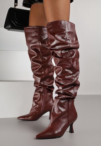 Bordowe Kozaki na Szpilce z Marszczoną Cholewką Lidaneva