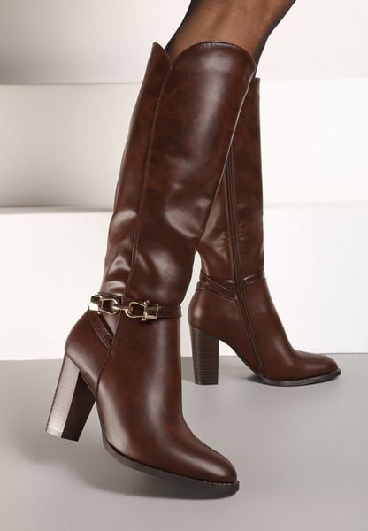 Brązowe Kozaki na Słupku Muszkieterki z Klamerką Vortilina