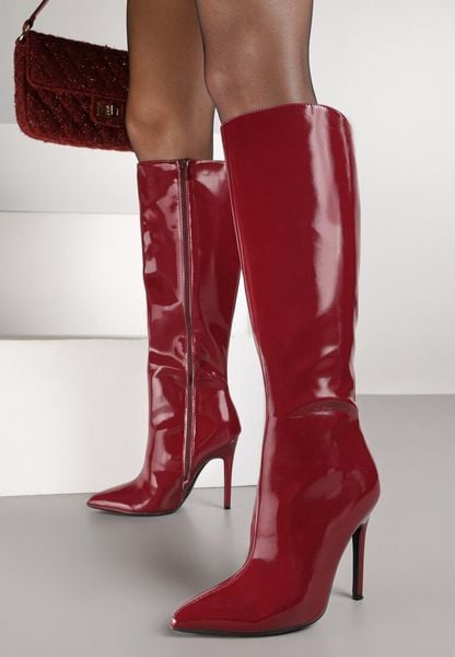 Bordowe Lakierowane Kozaki na Szpilce z Marszczeniem Acarrive