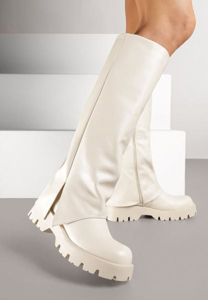 Beżowe Kozaki na Grubej Podeszwie z Wywiniętą Cholewką Palamme