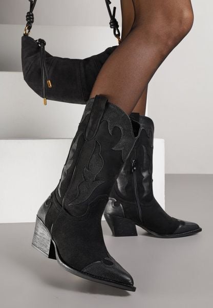 Czarne Kozaki Kowbojki na Stożku z Tłoczoną Cholewką Avrenne