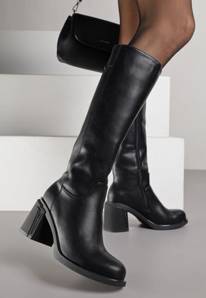 Czarne Kozaki VICES na Słupku ze Skóry Naturalnej Fezenna