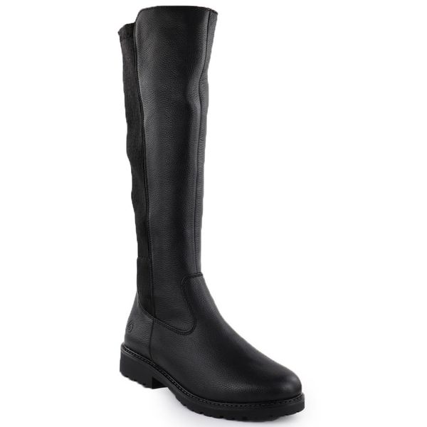 Skórzane kozaki damskie z elastyczną cholewką czarne Remonte Rieker R6594-00