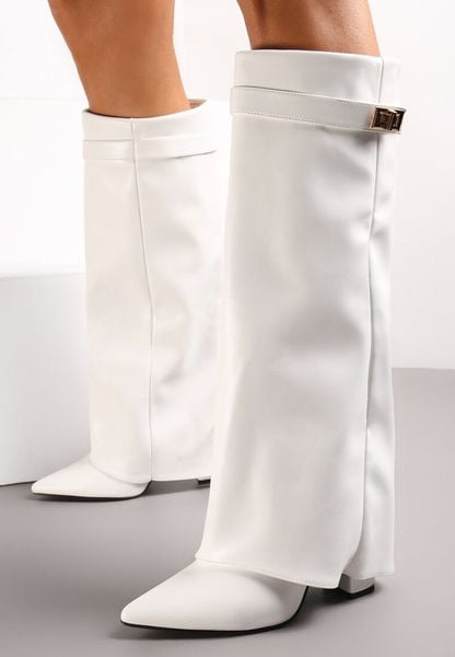 Białe Kozaki na Słupku z Wywiniętą Cholewką i Noskiem w Szpic Selvaggia