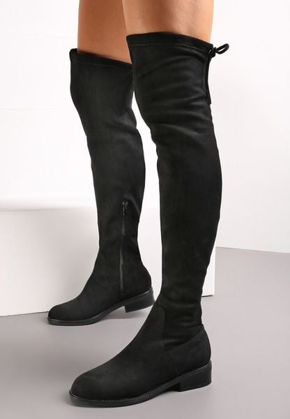 Czarne Kozaki za Kolano Zapinane na Suwak Calvina