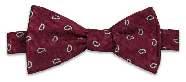 Ciemna Czerwona Elegancka Wiązana Mucha -EM Men’s Accessories- Męska, Paisley, Łezki