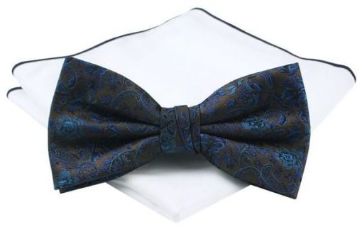 Męska Mucha (Poszetka w Zestawie) – Chattier – Granatowe Kwiaty, Brązowe Tło