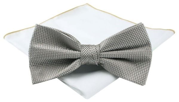 Męska Mucha (Poszetka w Zestawie) – Chattier – Stalowy Odcień Beżu
