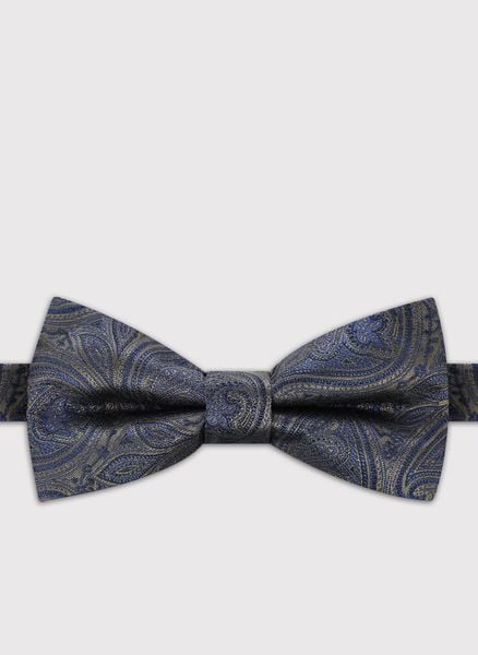 Żakardowa mucha męska – Pako Lorente. Niebiesko-szara mucha męska we wzór. Skład: 100% poliester. Idealna na śluby, bankiety i eleganckie przyjęcia.