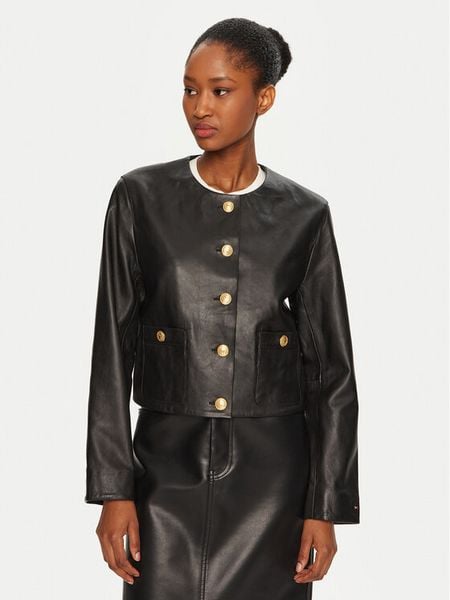 Tommy Hilfiger Kurtka skórzana WW0WW43781 Czarny Regular Fit