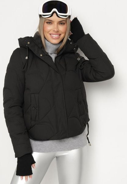 Czarna Pikowana Kurtka o Pudełkowym Kroju z Kapturem i Ściągaczami Selizola