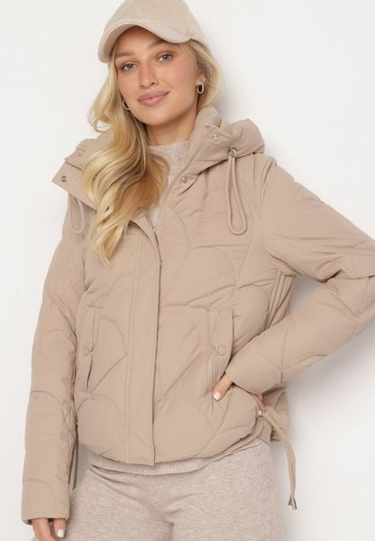 Beżowa Pikowana Kurtka o Pudełkowym Kroju z Kapturem i Ściągaczami Selizola