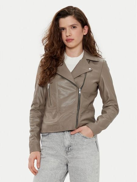 YAS Kurtka skórzana Sophie 26018510 Szary Regular Fit