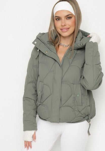 Ciemnozielona Pikowana Kurtka o Pudełkowym Kroju z Kapturem i Ściągaczami Selizola