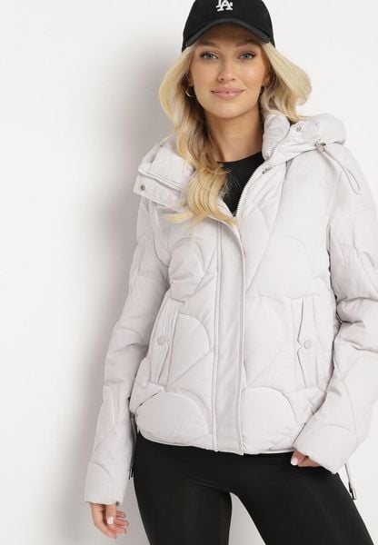 Biała Kurtka Pikowana w Stylu Parki ze Ściągaczem w Talii i Odpinanym Kapturem Erivieria