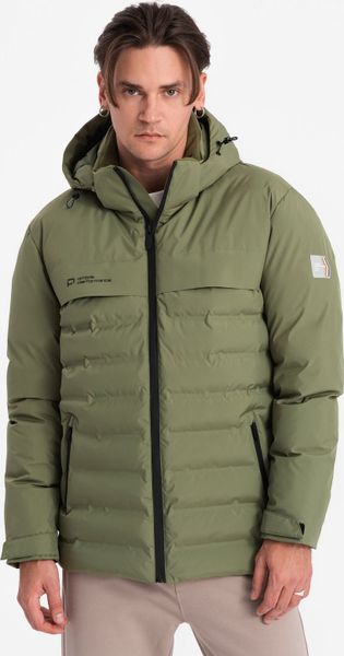 Kurtka męska Ombre Zimowa kurtka męska z odpinanym kapturem – oliwkowa V1 OM-JAHP-0150 S