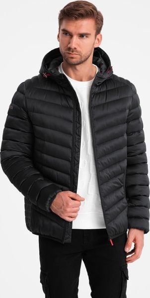 Kurtka męska Ombre Lekko ocieplona pikowana męska kurtka z satynowym wykończeniem czarna V2 OM-JALP-0180 M