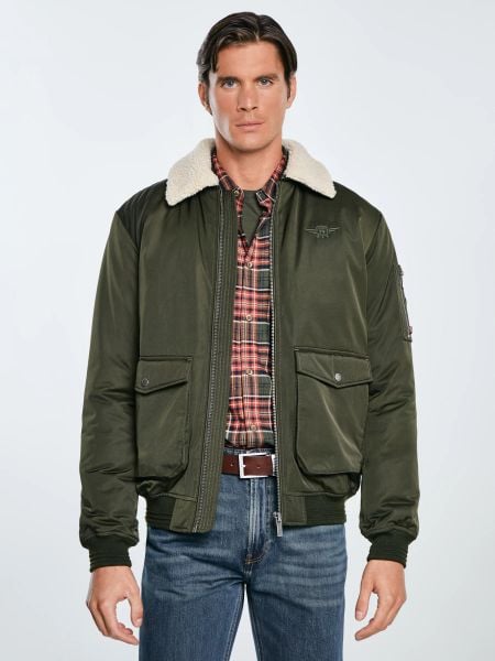 Kurtka męska bomber z kożuszkiem khaki Getnew 303