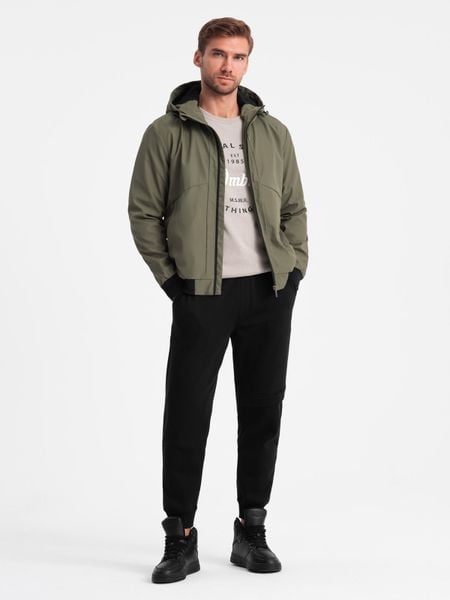 Lekka kurtka męska z kapturem i siateczkową podszewką – oliwkowa V2 – Rozmiar: S