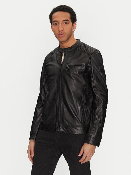 Mustang Kurtka skórzana 310-24-055 Czarny Regular Fit