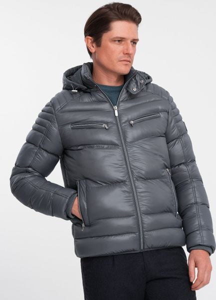 Kurtka męska Ombre Kurtka męska zimowa pikowana z ozdobnymi zamkami – grafitowa V3 OM-JAHP-22FW-010 L