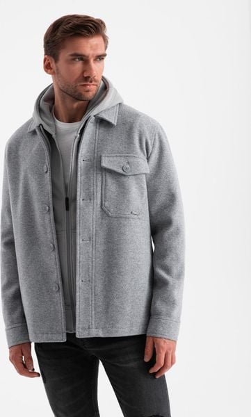 Kurtka męska Ombre Lekka flauszowa kurtka męska z dodatkiem wiskozy szara V2 OM-JANP-0199 XL