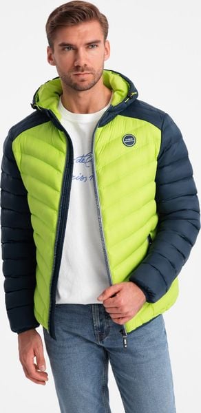 Kurtka męska Ombre Nylonowa pikowana kurtka męska w stylu sportowym limonkowa V4 OM-JALP-0185 XXL