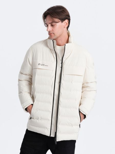Kurtka męska Ombre Zimowa kurtka męska z odpinanym kapturem - kremowa V2 OM-JAHP-0150 S