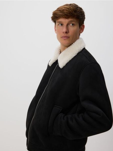 Kurtka sherpa z kołnierzem – czarny