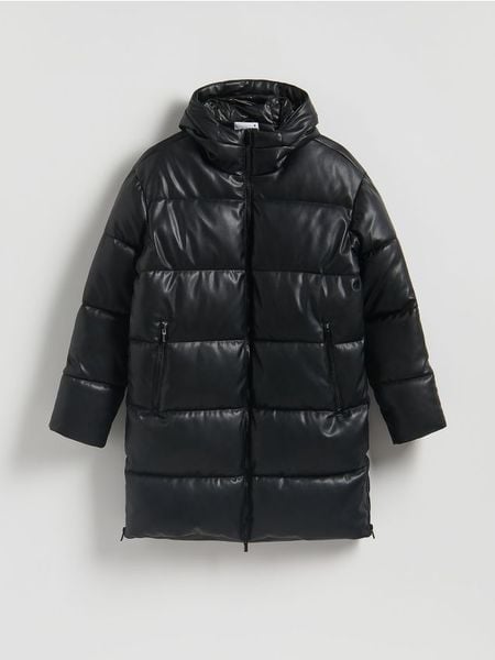 Kurtka o dłuższym kroju, wykonana z pikowanej tkaniny z ociepleniem.