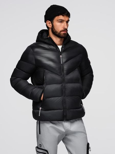 Nowoczesna pikowana kurtka męska z łączonych materiałów – czarna V1 - Rozmiar: S